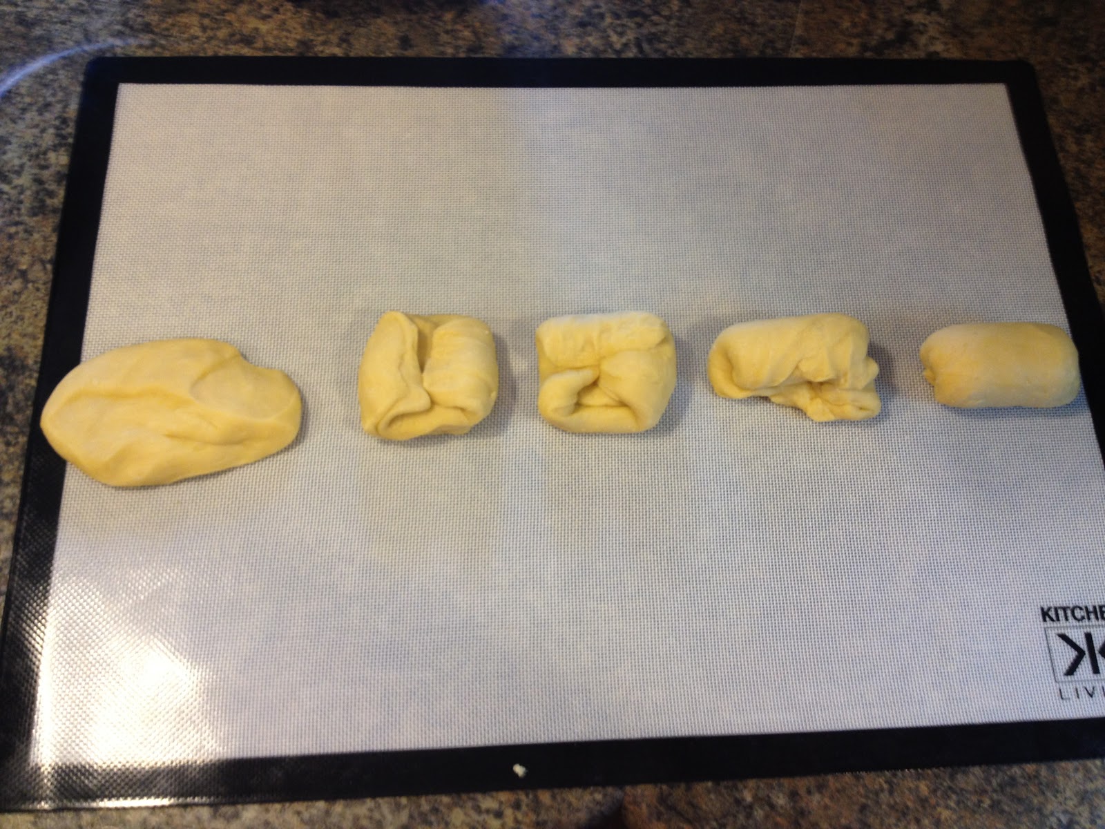 Then the dough pieces needed to be pre-shaped into small oblongs.